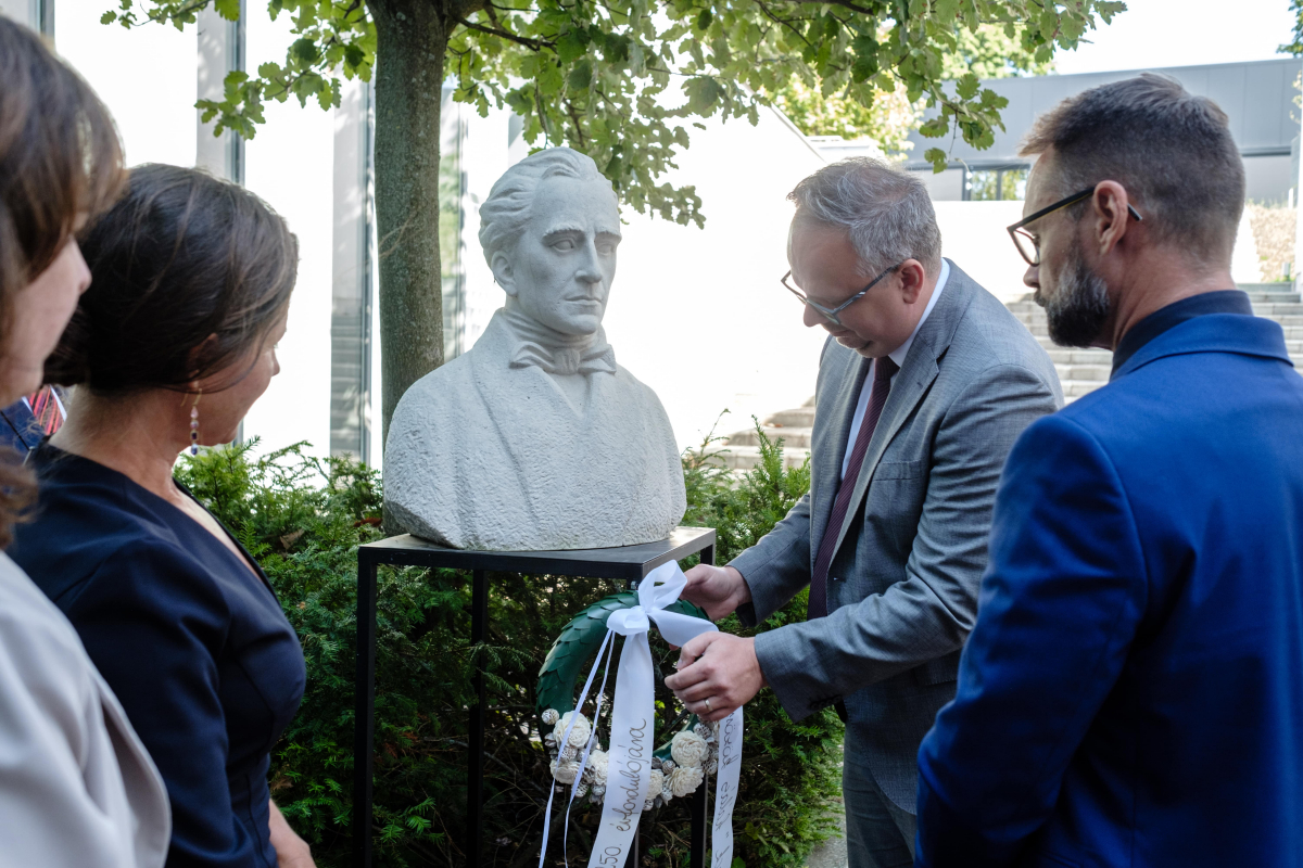 oktatóit és hallgatóit, valamint koszorút helyeztünk el Pollack Mihály