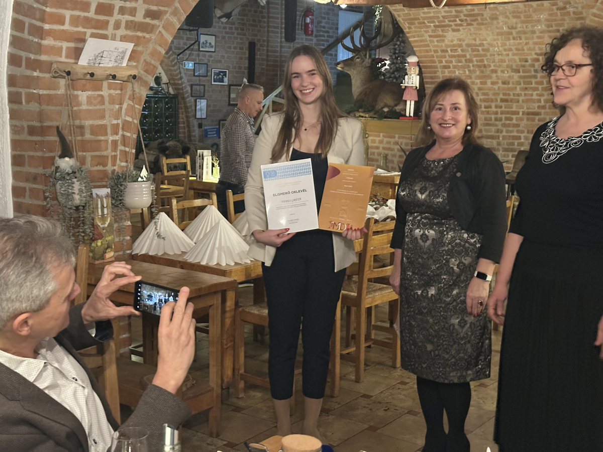 A díjat az MMK energetikai Tagozat nevében Zanatyné Uitz Zsuzsanna (Kaposhő), a TDK okleveleket Eördöghné Dr. Miklós Mária a PTE MIK gépészmérnök szaki TDK-felelőse nyújtotta át.